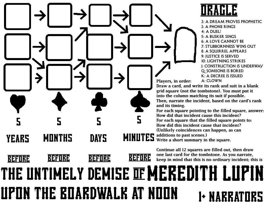 Permission is hereby granted to reproduce and create derivative works of all rule text so long as all reproductions and works include or are accompanied by the following instructions: "This is a game based on Sting's 1993 "Shape of My Heart." To understand the game, read the rules while playing the song or interleave the rules text with the lyrics as appropriate."